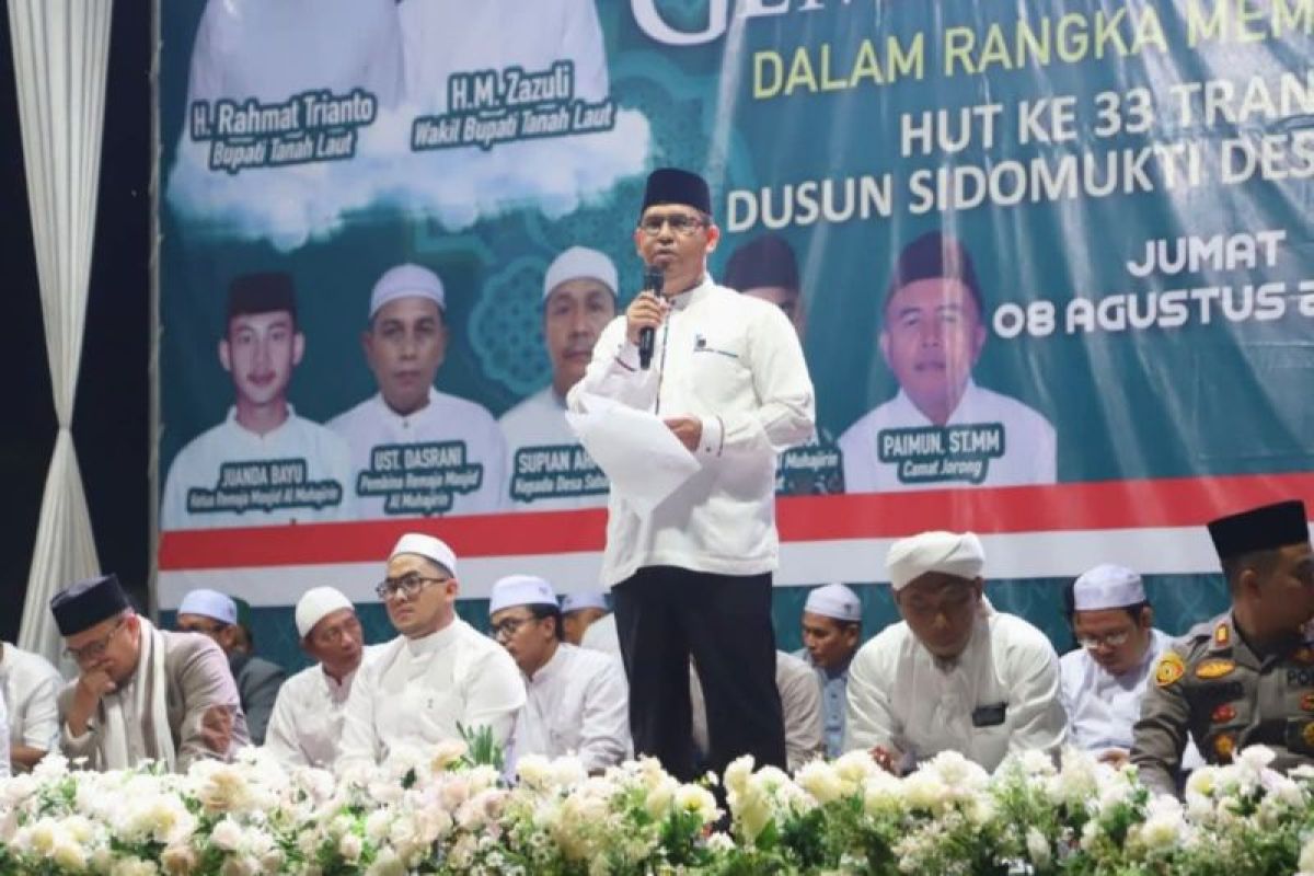 "Pembangunan tidak hanya soal infrastruktur dan ekonomi, tetapi juga pembangunan karakter dan akhlak masyarakat," ujarnya saat menghadiri Tabligh Akbar dan Gema Salawat memperingati HUT ke-33 Trans 150 Dusun Sidomukti, Desa Sabuhur, Kecamatan Jorong, Jumat malam.