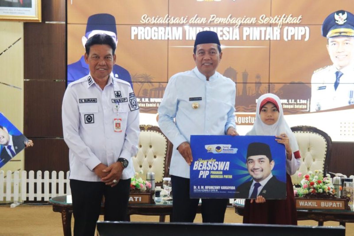 Sebanyak 500 siswa di Kabupaten Hulu Sungai Selatan (HSS), Kalimantan Selatan, menerima sertifikat Program Indonesia Pintar (PIP) pada rangkaian sosialisasi dan penyerahan sertifikat yang dihadiri Ketua Komisi II DPR RI Dapil Kalimantan I HM Rifqinizamy Karsayuda.