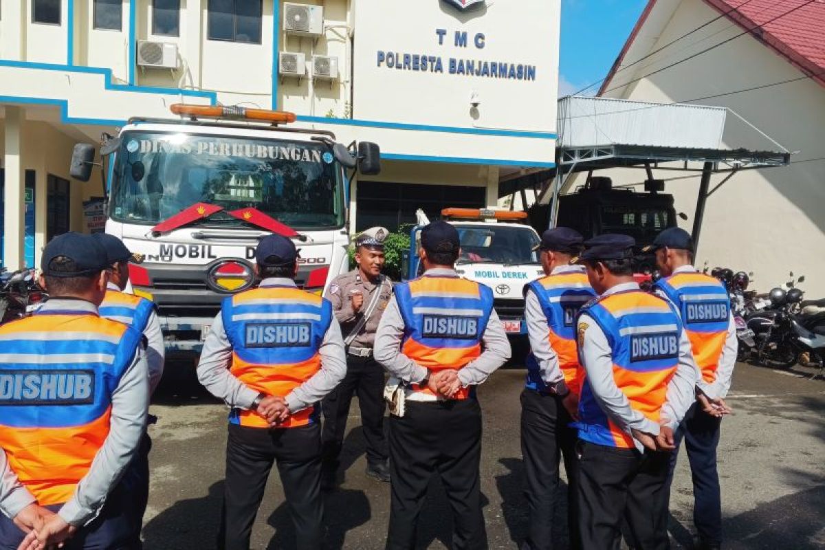Satuan Lalu Lintas (Satlantas) Polresta Banjarmasin, jajaran Polda Kalimantan Selatan (Kalsel) bersama Dinas Perhubungan (Dishub) Kota Banjarmasin menyiapkan dua mobil derek pada momen kegiatan 5 Rajab di Sekumpul, Martapura.