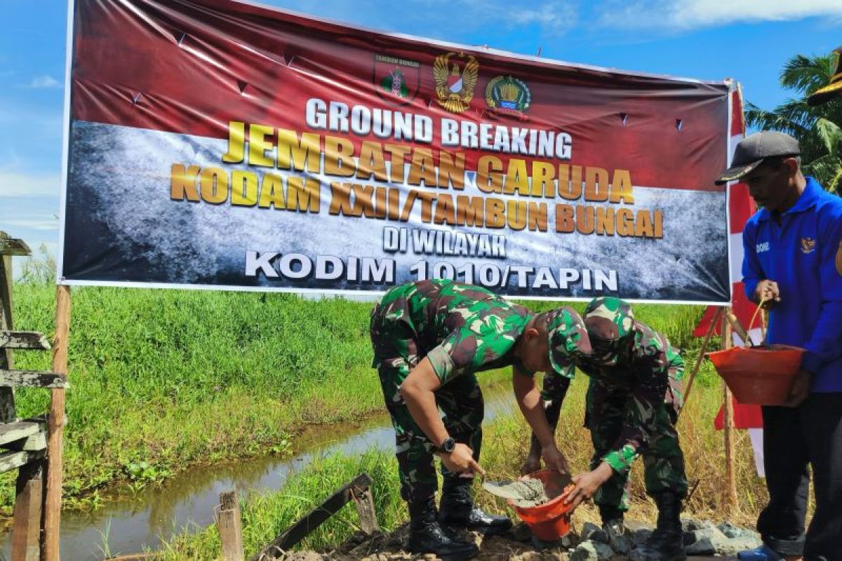 Kodim 1010/Tapin mulai membangun jembatan Garuda di Desa Sawaja, Kecamatan Candi Laras Utara, Kabupaten Tapin, Provinsi Kalimantan Selatan guna membuka akses wilayah yang selama ini terisolasi.