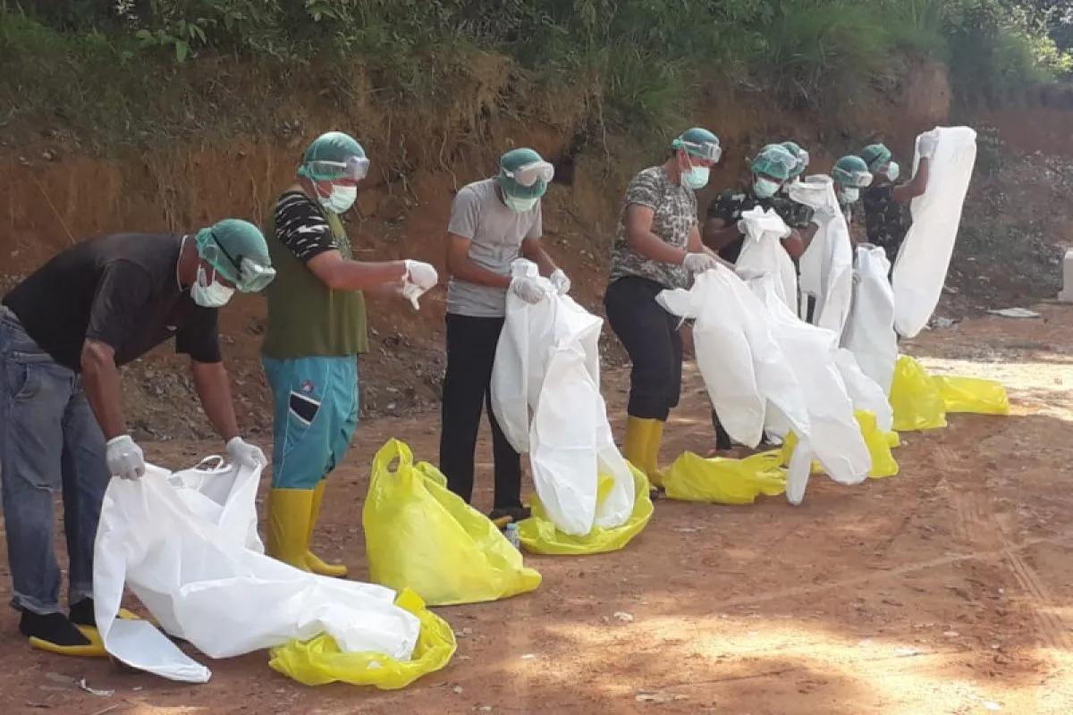 Sebanyak dua pasien positif masing - masing DA dan BA meninggal dunia beberapa hari yang lalu dan dimakamkan sesuai protokol kesehatan COVID - 19.