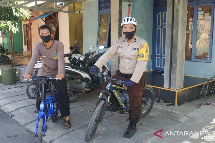 Sembari bersepeda, Aipda Abdul Aziz semakin gencar lakukan giat sambang kamtibmas sekaligus mengedukasi terkait protokol kesehatan cegah COVID-19 kepada warga binaannya.
