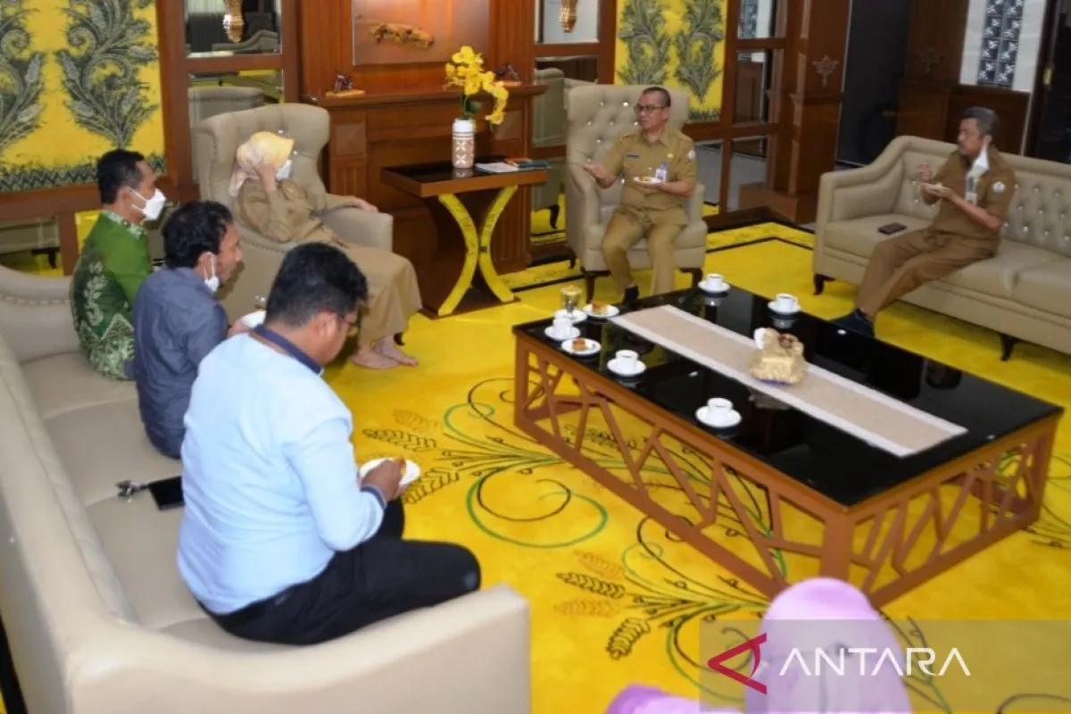 Saat menerima rombongan, Bupati Batola Noormiliyani AS didampingi Sekda H Zulkipli Yadi Noor di rumah jabatan bupati setempat.