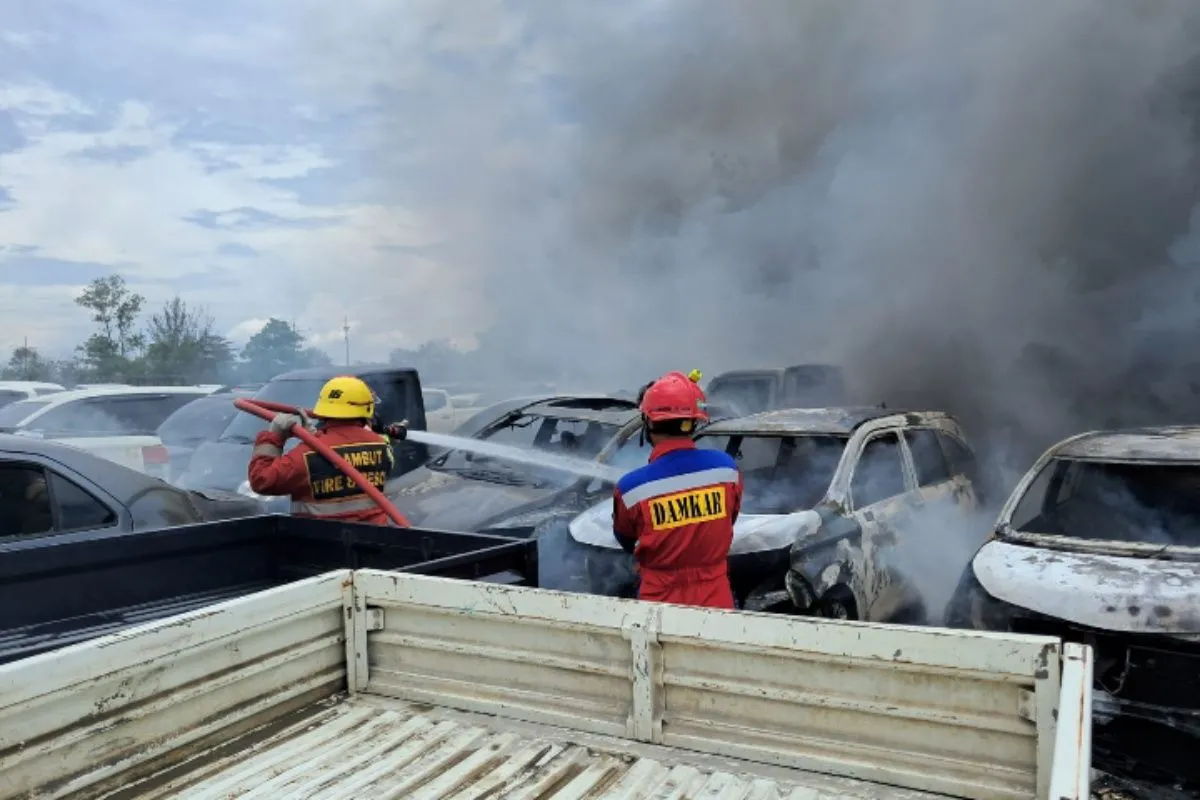 Kebakaran di parkiran PT JBA, yang berlokasi di Jalan Ahmad Yani Km 18, Ruko Pertokoan Kota Citra Graha, Kelurahan Landasan Ulin Barat, Kecamatan Liang Anggang, terjadi pada Kamis sekitar pukul 13.00 WITA.