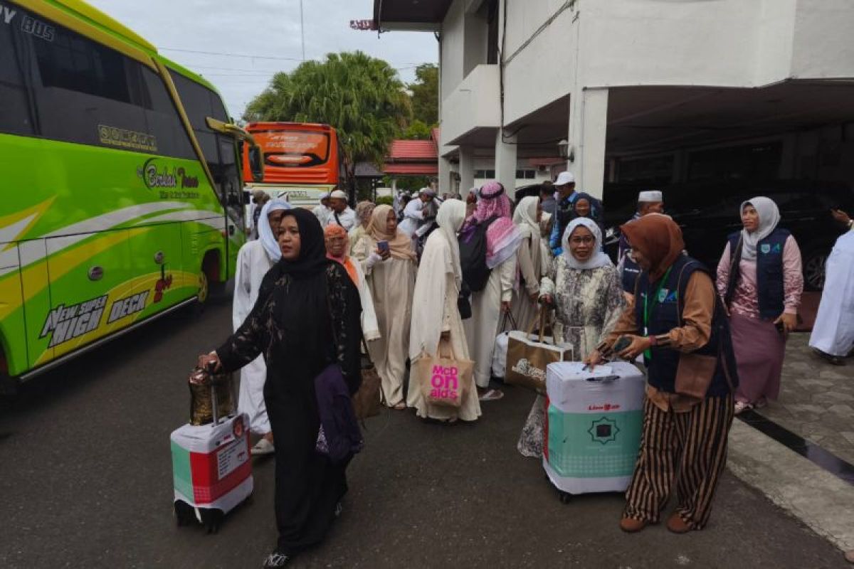 Setibanya di bandara, jamaah langsung dibawa ke Debarkasi Banjarmasin di Banjarbaru untuk menjalani proses penyambutan dan pemeriksaan administrasi, sebelum melanjutkan perjalanan ke daerah masing-masing.