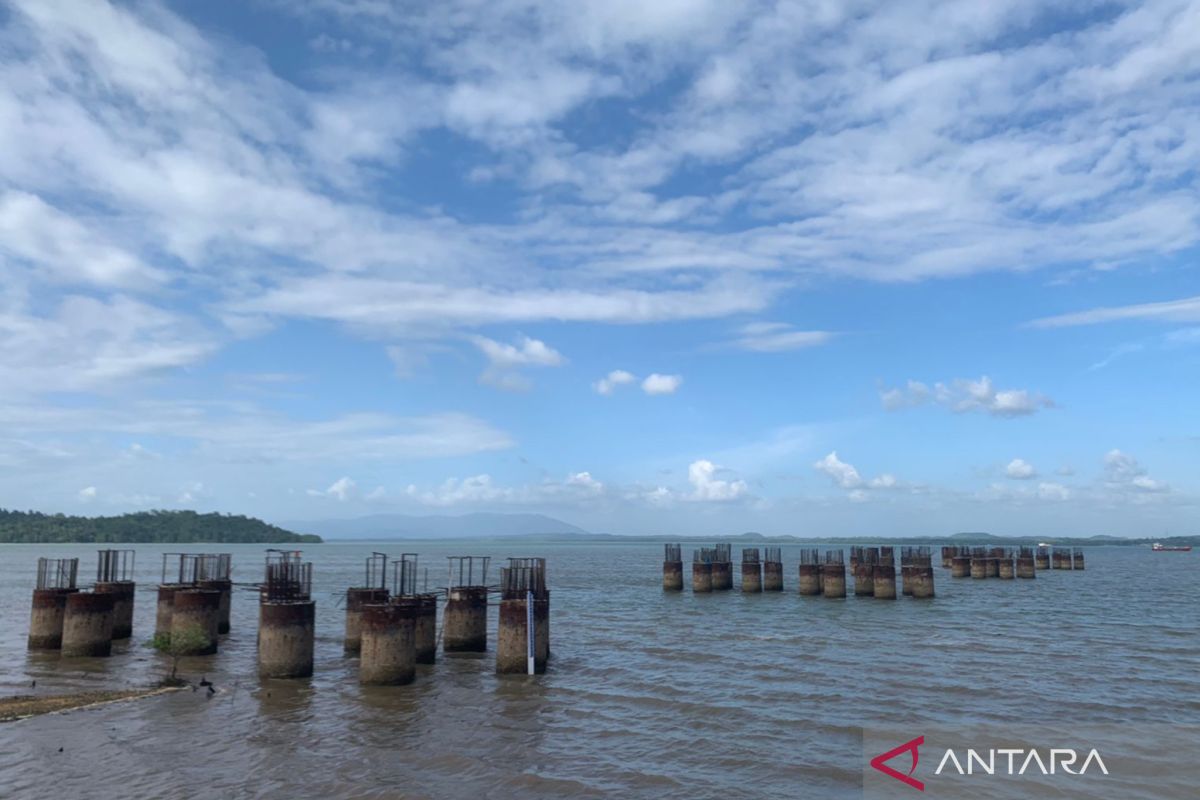 Sejumlah pondasi untuk pembangunan infrastruktur jembatan yang menghubungkan Batulicin dan Pulau Laut Kotabaru di Kabupaten Tanah Bumbu, Provinsi Kalimantan Selatan (Kalsel), Selasa (15/7/2025). Pemerintah Kabupaten (Pemkab) Tanah Bumbu dan Pemkab Kotabaru menganggarkan Rp100 miliar per tahun selama periode lima tahun, sedangkan Pemprov Kalsel mengalokasikan dana Rp300 miliar per tahun selama lima tahun untuk menyelesaikan jembatan sepanjang 6,5 kilometer tersebut. ANTARA/Sujud Mariono