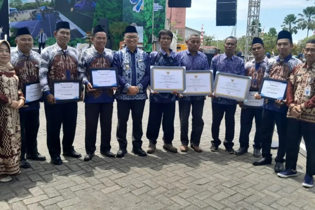 Gubernur H. Muhidin juga menyerahkan penghargaan terbaik pertama kepada penyuluh pertanian di BPP Kembang Kuning Kecamatan Haruai Kabupaten Tabalong Rezky Setiadi Ramdhan.