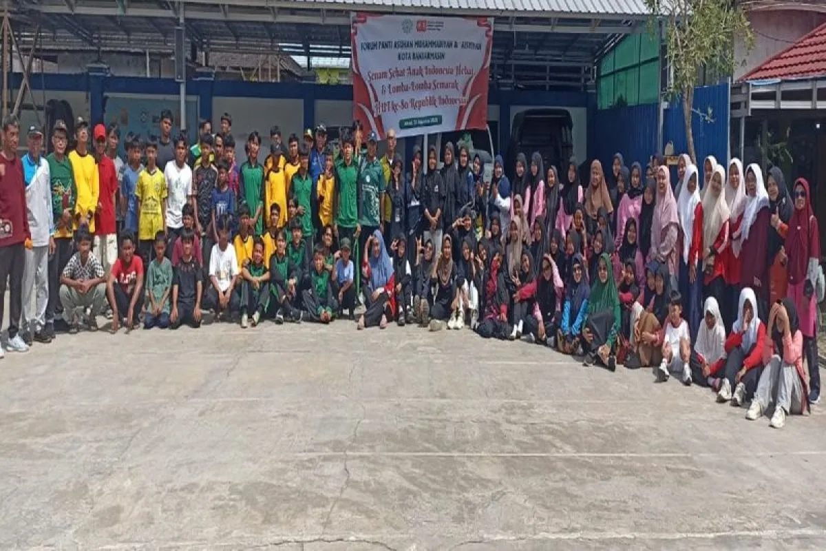 Banjarmasin (ANTARA) - Forum Panti Asuhan Muhammadiyah dan Aisyiyah Kota Banjarmasin menggelar senam sehat bertema "Anak Indonesia Hebat" dan sejumlah lomba dalam memeriahkan Hari Ulang Tahun ke-80 Kemerdekaan RI, di halaman Masjid Al Tanwir, Banjarmasin.