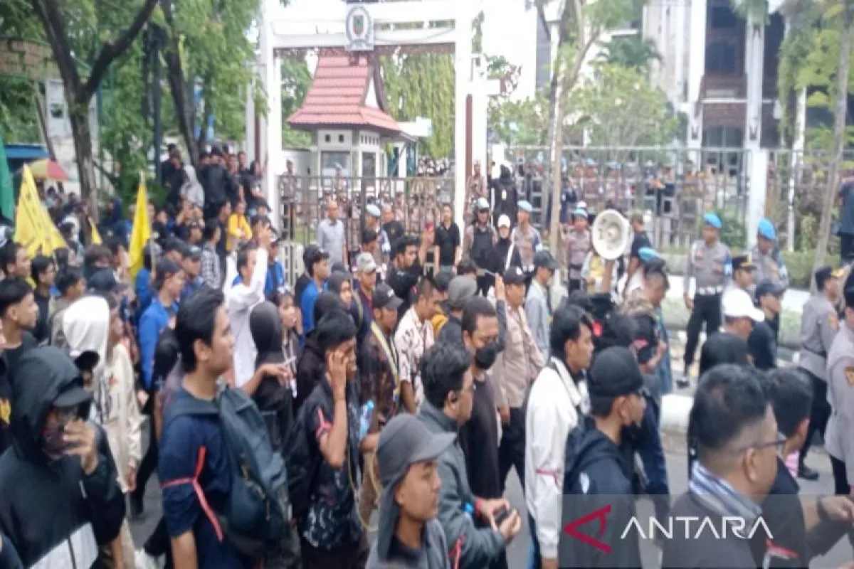 Banjarmasin (ANTARA) - Massa gabungan yang terdiri dari aliansi mahasiswa, komunitas ojek berbasis platform atau online (Ojol) dan masyarakat menuntut agar Ketua DPRD Kalsel Supian HK menemui para pendemo.