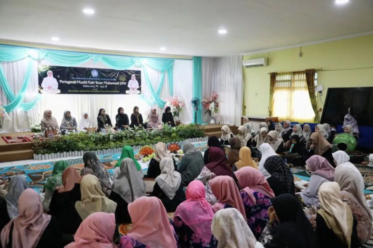 Ketua TP PKK HSU Murniati Sahrujani dalam sambutannya, mengajak seluruh anggota TP PKK HSU dan masyarakat jadikan momen ini untuk introspeksi diri serta meneladani kehidupan Nabi Muhammad SAW.