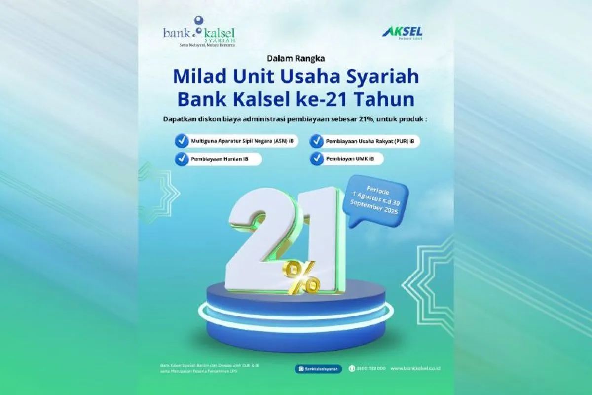 Diskon 21% untuk biaya administrasi ini merupakan apresiasi Bank Kalsel kepada para nasabahnya yang telah mempercayakan kebutuhan finansial mereka kepada unit usaha syariahnya.