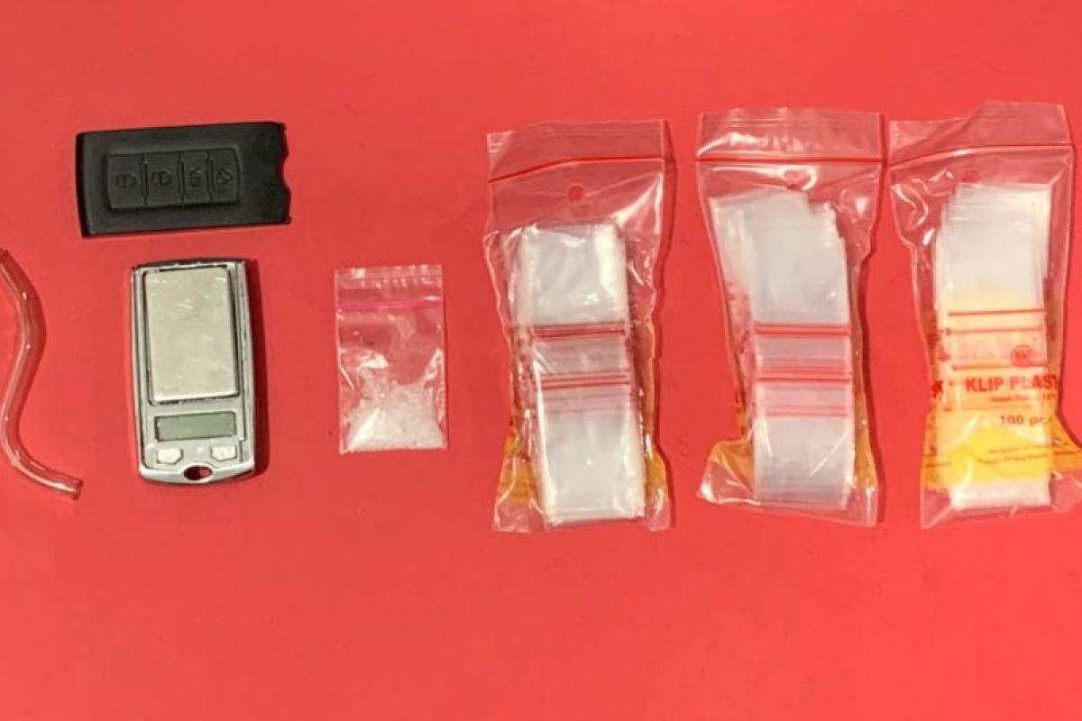 Termasuk menyita satu unit timbangan digital, pipet kaca, tiga pak plastik dan dua unit gawai milik pelaku.
