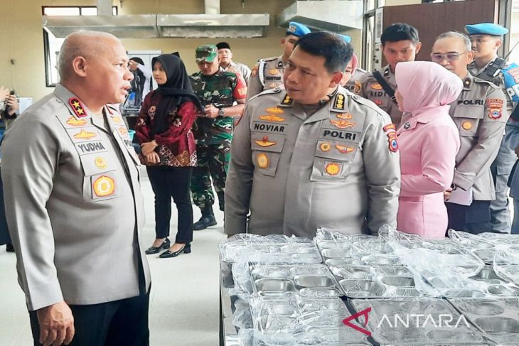 Kapolda Kalimantan Selatan Irjen Pol Rosyanto Yudha Hermawan mengecek alat makan di SPPG Polda Kalsel di Kota Banjarbaru. (ANTARA/Firman)