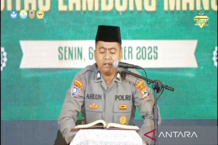 Banjarbaru (ANTARA) - Lantunan ayat suci Al-Quran yang dikumandangkan oleh Briptu Muhammad Ahlun Nazhar menandai seremonial pembukaan Musabaqah Tilawatil Quran Mahasiswa Nasional (MTQMN) XVIII 2025 di Universitas Lambung Mangkurat (ULM) di Auditorium ULM di Banjarbaru, Kalimantan Selatan, Senin siang.