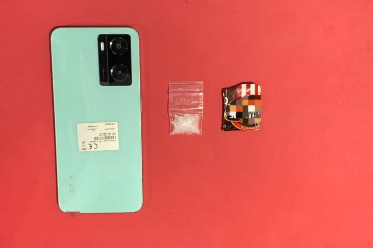 Penangkapan dipimpin Kasatresnarkoba AKP Abdullah dengan barang bukti berupa sabu 0,8 gram dan gawai warna hijau toska.