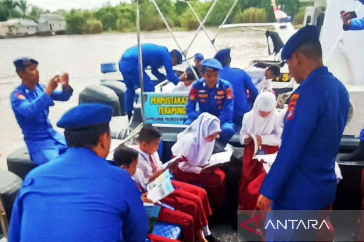 Menumbuhkan minat anak dalam membaca buku itu dilakukan oleh anggota Satpolairud Polresta Banjarmasin itu di atas kapal perpustakaan terapung.