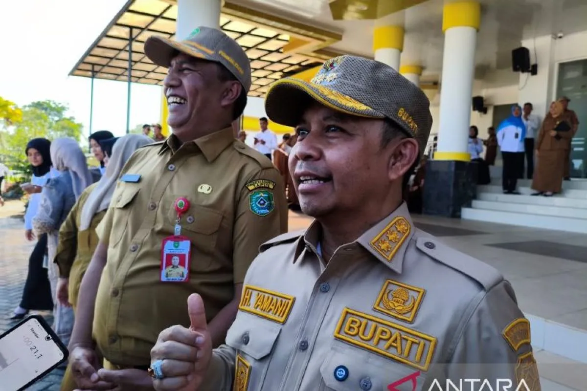 Bupati Tapin H. Yamani saat diwawancarai oleh media di Rantau, Kabupaten Tapin, Rabu (5/11/2025). (ANTARA/Muhammad Rastaferian Pasya)
