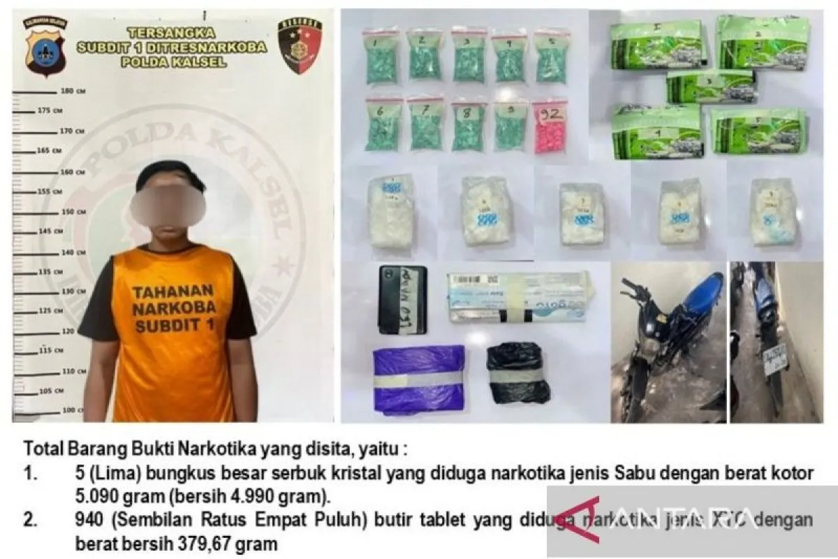 Banjarmasin (ANTARA) - Tim Opsnal Subdit 1 Direktorat Reserse Narkoba (Ditresnarkoba) Polda Kalimantan Selatan mengungkap peredaran lima kilogram sabu-sabu dan 940 butir ekstasi dari seorang pria di Banjarmasin.