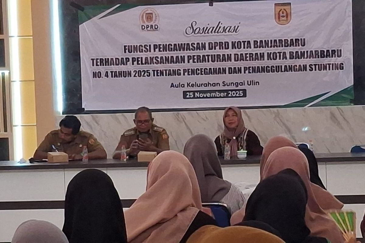 Sosialisasi tersebut mengangkat Peraturan Daerah Nomor 4 Tahun 2025 tentang Pencegahan dan Penanggulangan Stunting dihadiri perwakilan masyarakat yang dilaksanakan di Aula Kelurahan Sungai Ulin pada Selasa (25/11).