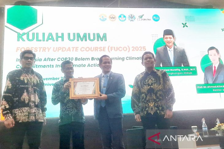 "Diplomasi bilateral dan inisiatif koalisi dengan banyak negara dan organisasi internasional bukti kepemimpinan Indonesia sebagai negara pemilik ekosistem strategis," kata dia saat kuliah umum bertema Forestry Update Course (Fuco) 2025 di Auditorium Universitas Lambung Mangkurat (ULM) di Banjarbaru, Sabtu.