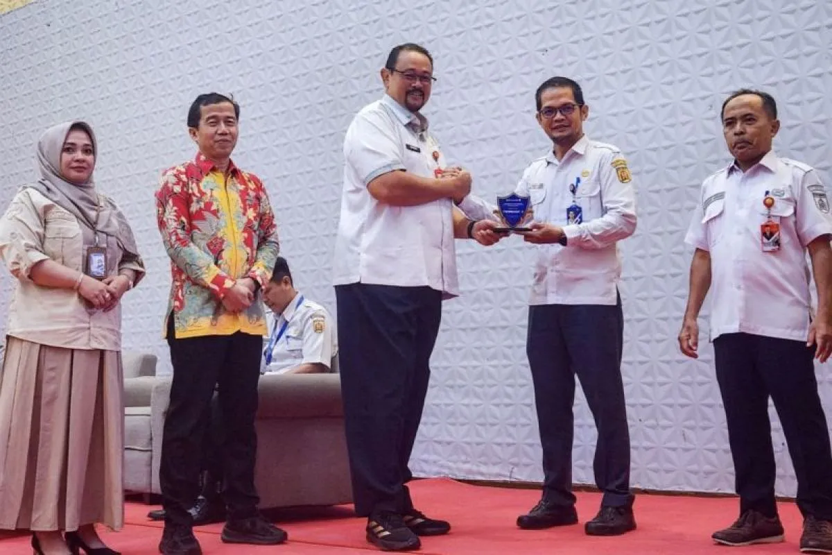 Penghargaan diserahkan Staf Ahli Wali Kota Banjarbaru Bidang Pemerintahan Pembangunan dan Kemasyarakatan Kemas Ahmad Rudi Indrajaya kepada Direktur RSD Danny Indrawardhana di Banjarbaru, Rabu (2/12/2025).