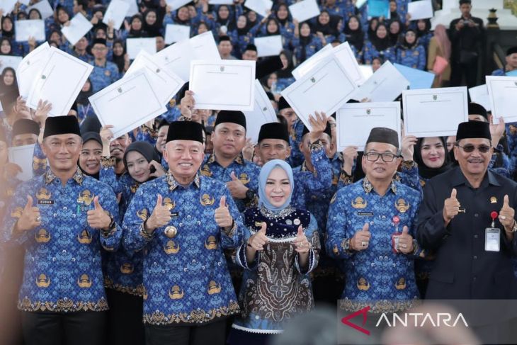Penyerahan SK PPPK Paruh Waktu kepada 6400 orang Aparatur Sipil Negara (ASN) jajaran Pemprov Kalsel secara simbolis oleh Gubernur setempat, H Muhidin yang juga hadir Kepala Badan Kepegawaian Negara (BKN) Republik Indonesia Zudan Arif Fakrulloh.