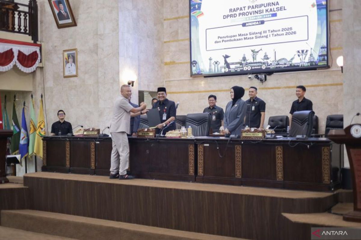 Penyerahan hasil reses oleh anggota Fraksi PKS Taufik Rahman kepada Ketua DPRD Kalsel H Supian HK berlangsung pada rapat paripurna penutupan masa sidang III 2025 dan masa sidang I (Januari - April) 2026 di Banjarmasin,. Jumat.