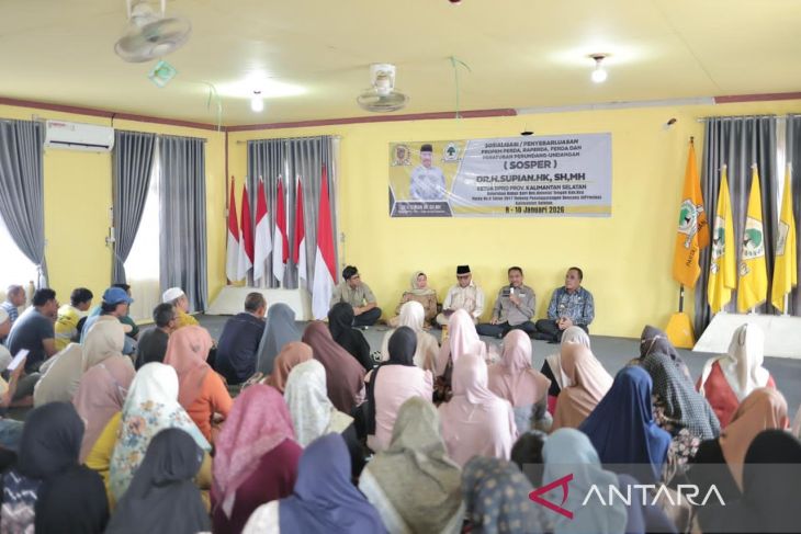 Hulu Sungai Utara Kalsel (ANTARA) - Ketua DPRD Kalimantan Selatan (Kalsel) H Supian HK sosialisasikan Peraturan Daerah (Perda) Nomor 6 Tahun 2017 tentang Penanggulangan Bencana di provinsi setempat.