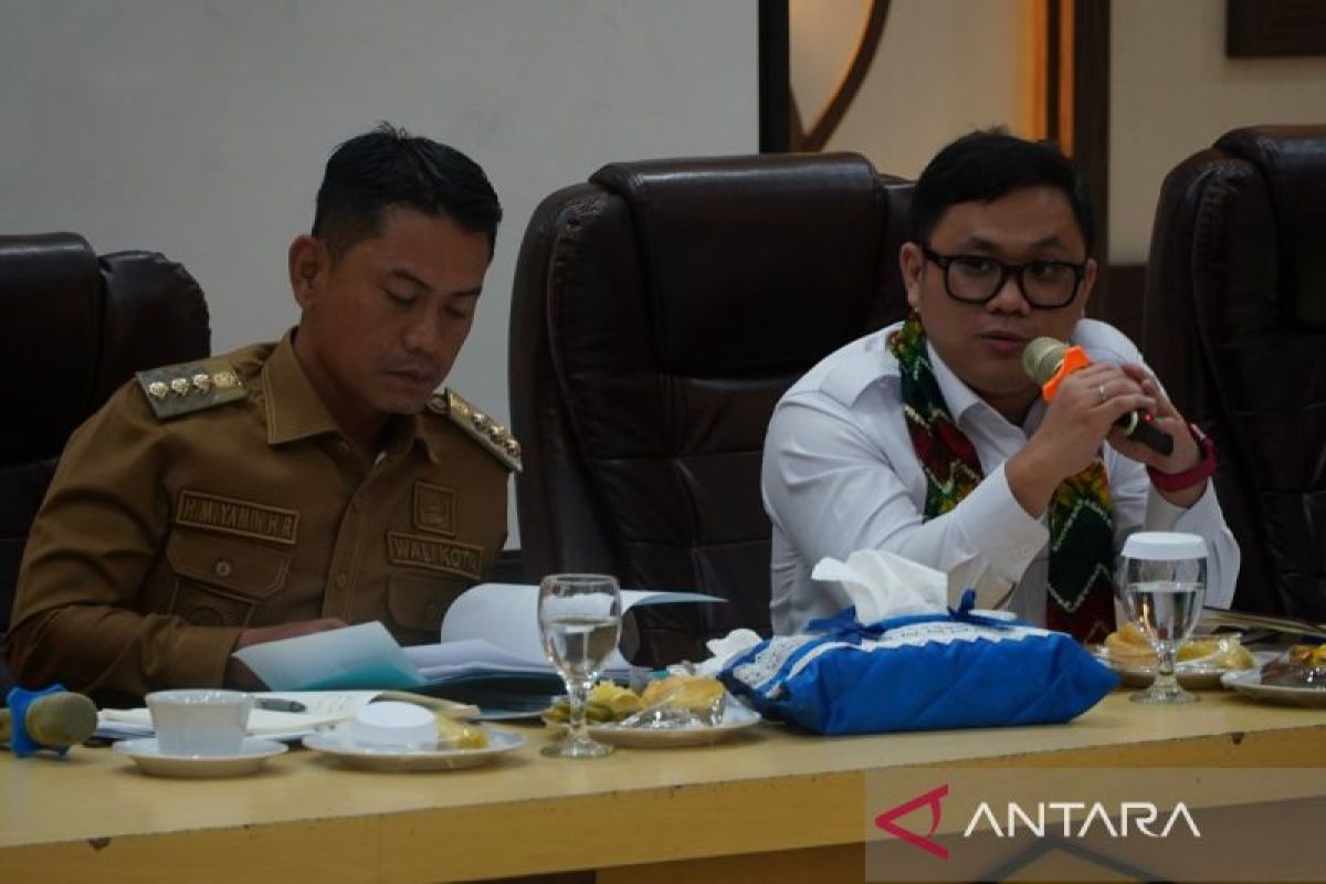 Staf Khusus Kantor Staf Kepresidenan Timothy Ivan Triyono melakukan rapat koordinasi dengan Pemkot Banjarmasin di Aula Kayuh Baimbai, Balaikota Banjarmasin, Senin.