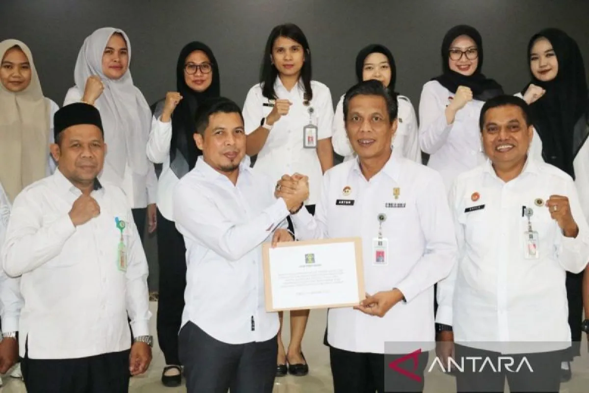 Setelah seluruh pembahasan dan penyempurnaan Ranperbup dinyatakan selesai, Anton kemudian menyerahkan dokumen hasilnya kepada Kepala Bagian Hukum Sekretariat Daerah Kabupaten Balangan Muhammad Roji.