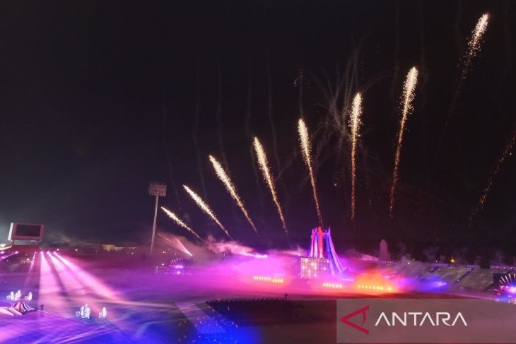 Pertunjukan kembang api, disertai tarian dan musik, mewarnai upacara pembukaan (opening ceremony) ASEAN Para Games 2025 Thailand, di 80th Birthday Anniversary Stadium, Nakhon Ratchasima, Selasa (20/1/2026) malam. ANTARA/Donny Aditra