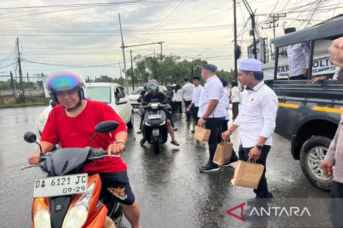 Batulicin (ANTARA) - Jajaran Polres Tanah Bumbu, Polda Kalimantan Selatan, bersama mahasiswa Stikes Darul Azhar membagikan takjil gratis kepada masyarakat dan pengendara yang melintas di Jalan Kodeco Desa Gunung Antasari, Kecamatan Simpang Empat.