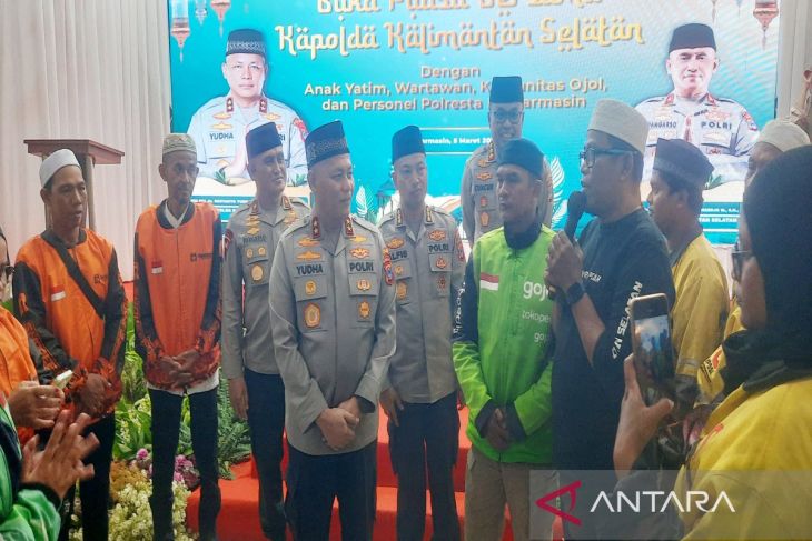 Banjarmasin (ANTARA) - Kapolda Kalimantan Selatan Irjen Pol Rosyanto Yudha Hermawan menggandeng wartawan untuk berbagi dengan anak yatim dan pengemudi ojek online (ojol) melalui kegiatan buka puasa bersama di Aula Mathilda Polresta Banjarmasin.
