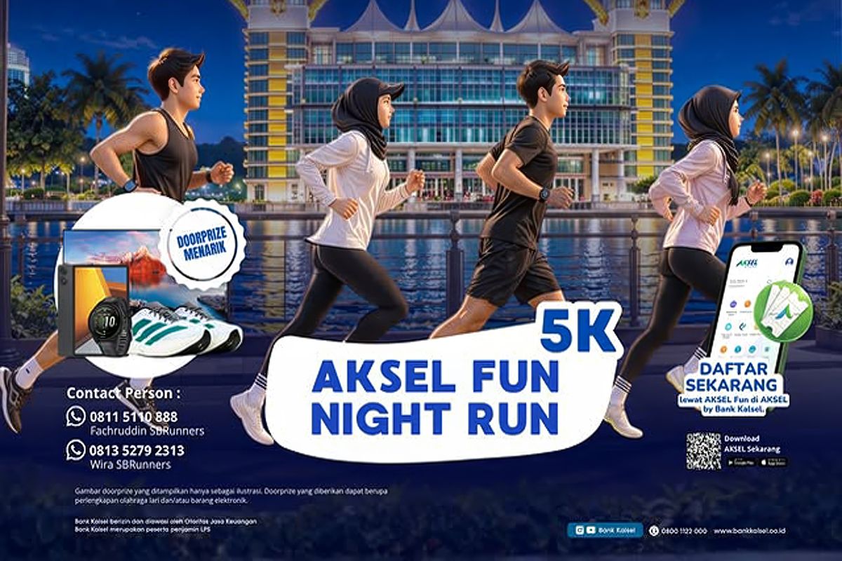 Banjarmasin (ANTARA) - Bank Kalsel menghadirkan ajang lari santai malam hari bertajuk "AKSEL Fun Night Run 5K", dengan biaya pendaftaran hanya Rp62,-, guna menyemarakkan Pekan AKSEL 2026.