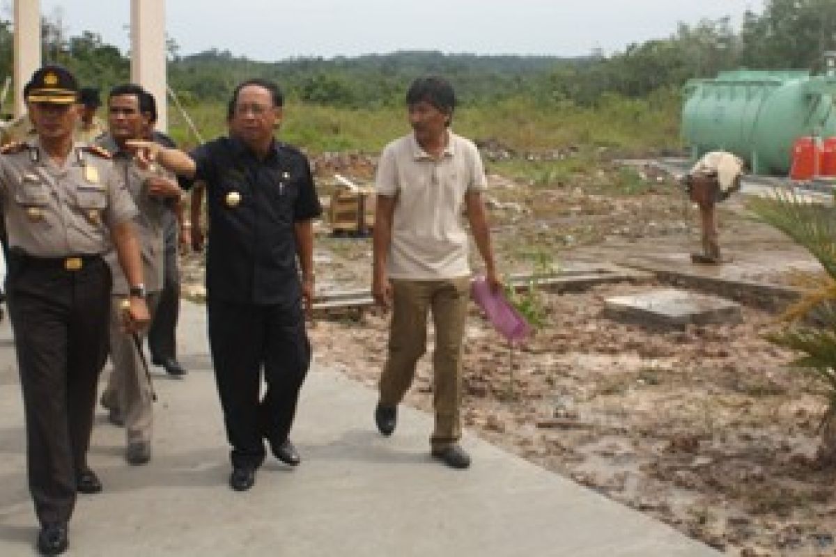 Paringin 9/2 - PENGOLAHAN AIR LIMBAH - Bupati Kabupaten Balangan, Kalimantan Selatan, Sefek Effendi dan muspida setempat, meninjau fasilitas Instalasi Pengolahan Air Limbah (IPAL) RSUD Balangan yang baru selesai di bangun, Senin (9/2). Dengan adanya fasilitas IPAL tersebut limbah buangan rumah sakit dapat diolah agar tidak mencemari lingkungan. Foto ANTARA/Rusmanadi