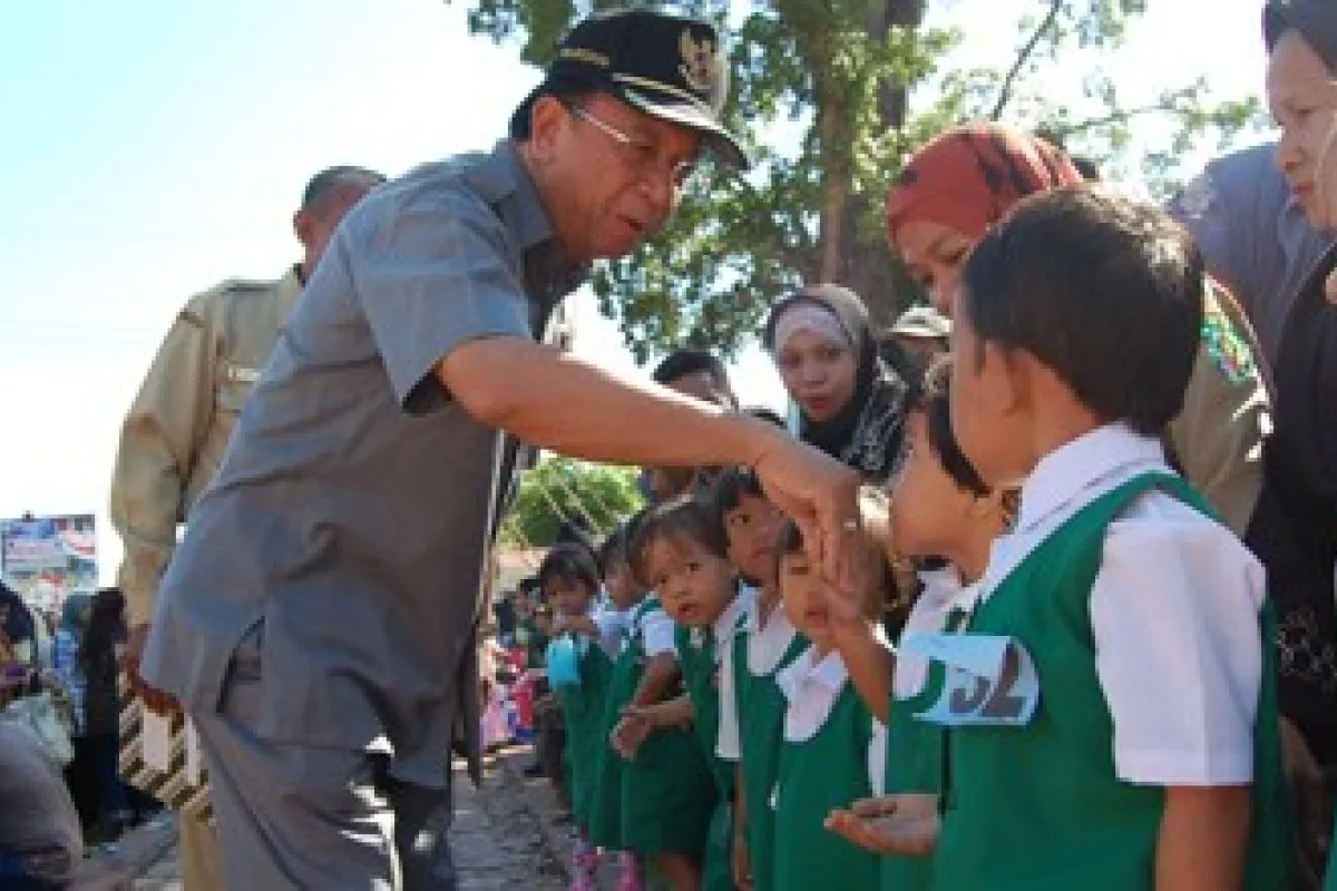 Paringin, 18/3 - GENERASI PENERUS - Bupati Kabupaten Balangan, Kalimantan Selatan, Sefek Effendie, bersalaman dengan anak-anak TK di Kota Paringin, ibu kota Balangan. Sejak 2005 hingga 2010, sekolah TK di Balangan bertambah sebanyak 12 buah atau meni