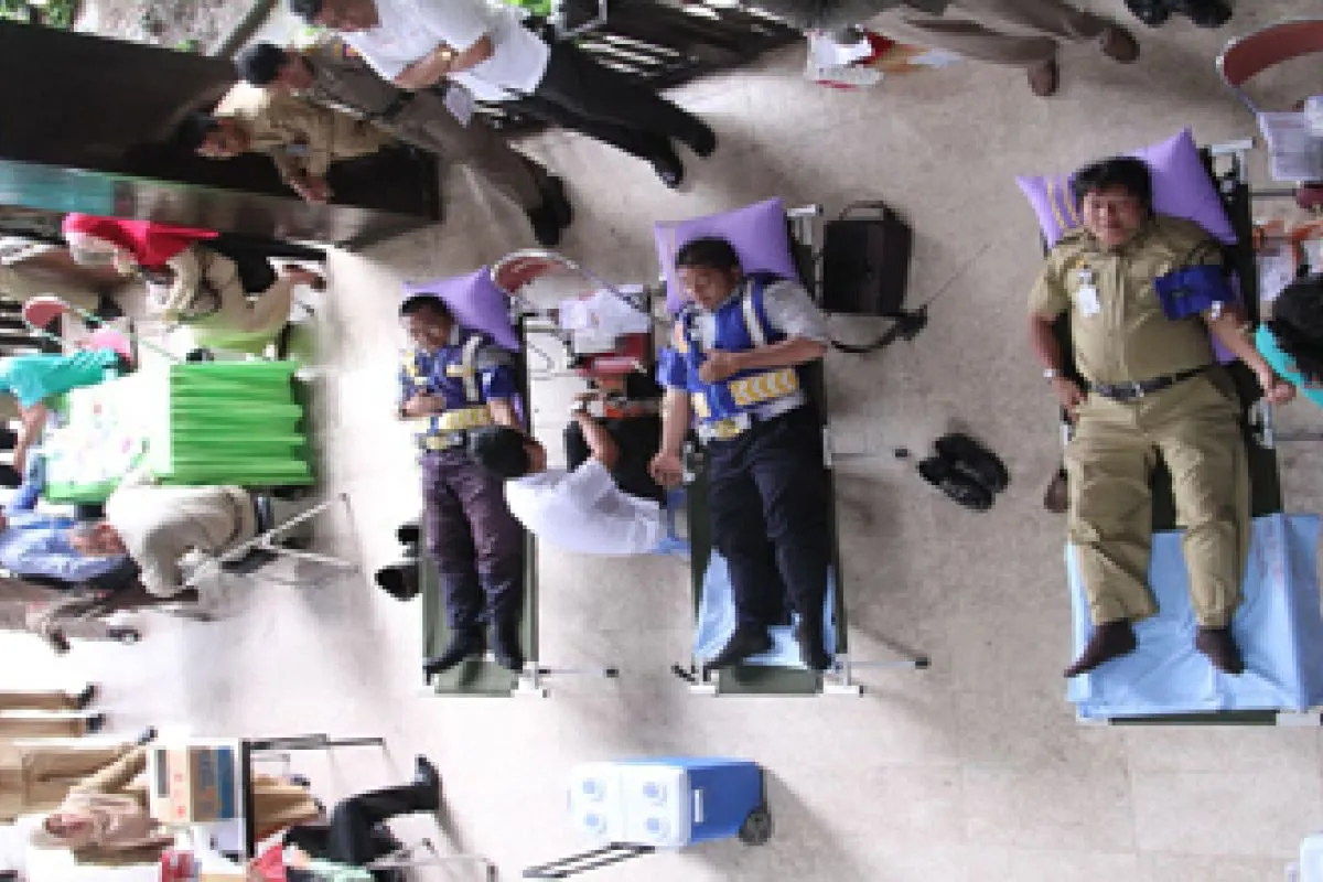 Banjarmasin,15/3 DONOR DARAH, Karyawan Pemkot Banjarmasin ramai-ramai mendonorkan darah ke Unit Transfusi Darah Banjarmasin di lobi balaikota Banjarmasin, (Foto Humas/Hasan Z)