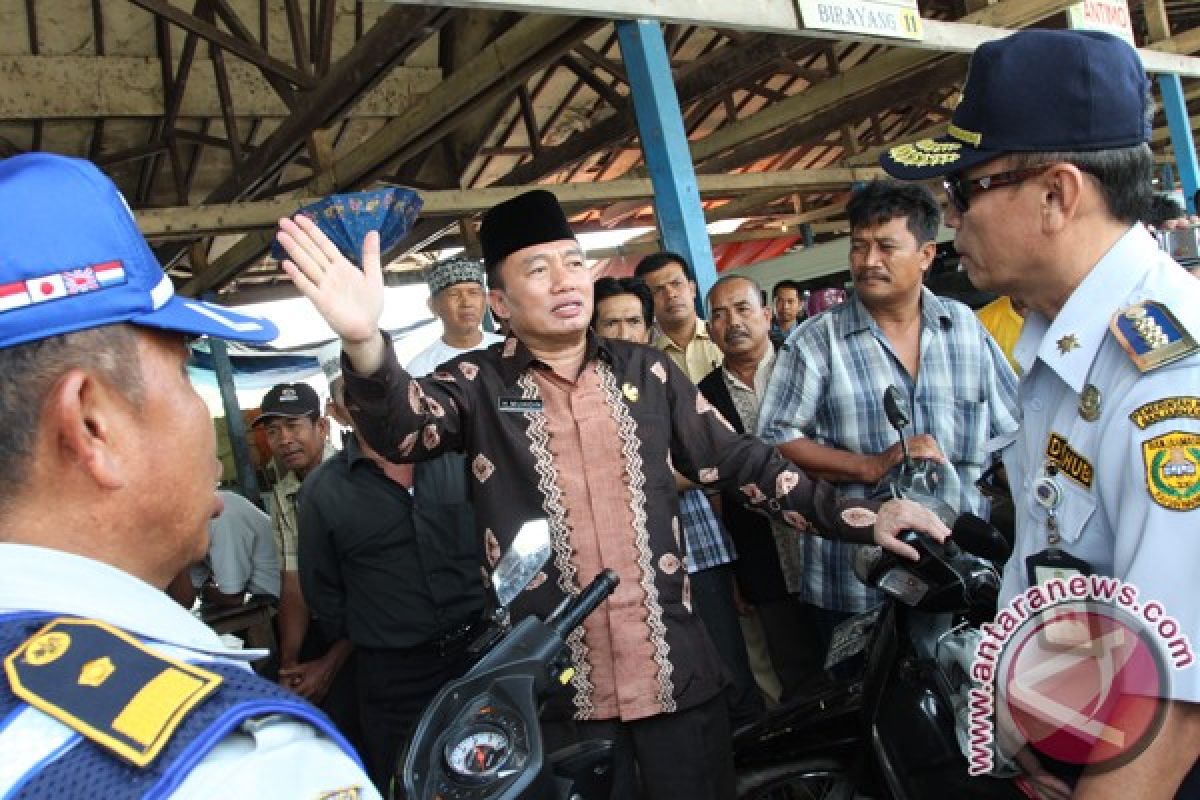 Banjarmasin, 14/8 - TINJAU TERMINAL INDUK - Walikota Banjarmasin H Muhidin berbincang dengan Kadishub Rusdiansyah saat melkukan peninjauan di terminal induk Banjarmasin, Selasa (14/8). Puncak arus mudik di terminal tersebut diperkirakan pada kamis, 1