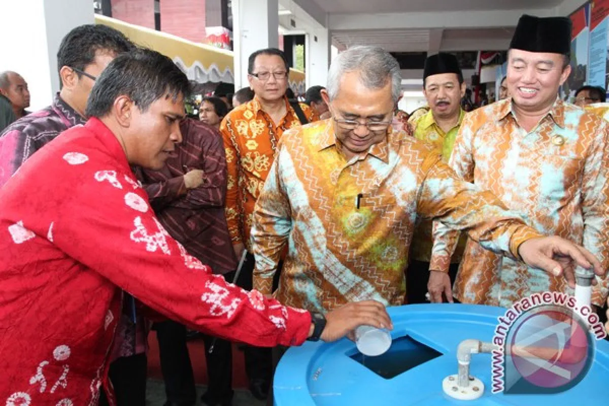 Banjarmasin, 24/9 - UNIT PENGOLAH AIR - Menteri Pekerjaan Umum Djoko Kirmanto memutar alat pengolah air saat meninjau stand laboratorium PDAM Bandarmasih pada peringatan Hari Jadi Kota Banjarmasin ke 486 di Balai Kota Banjarmasin, Senin (24/9). Mente
