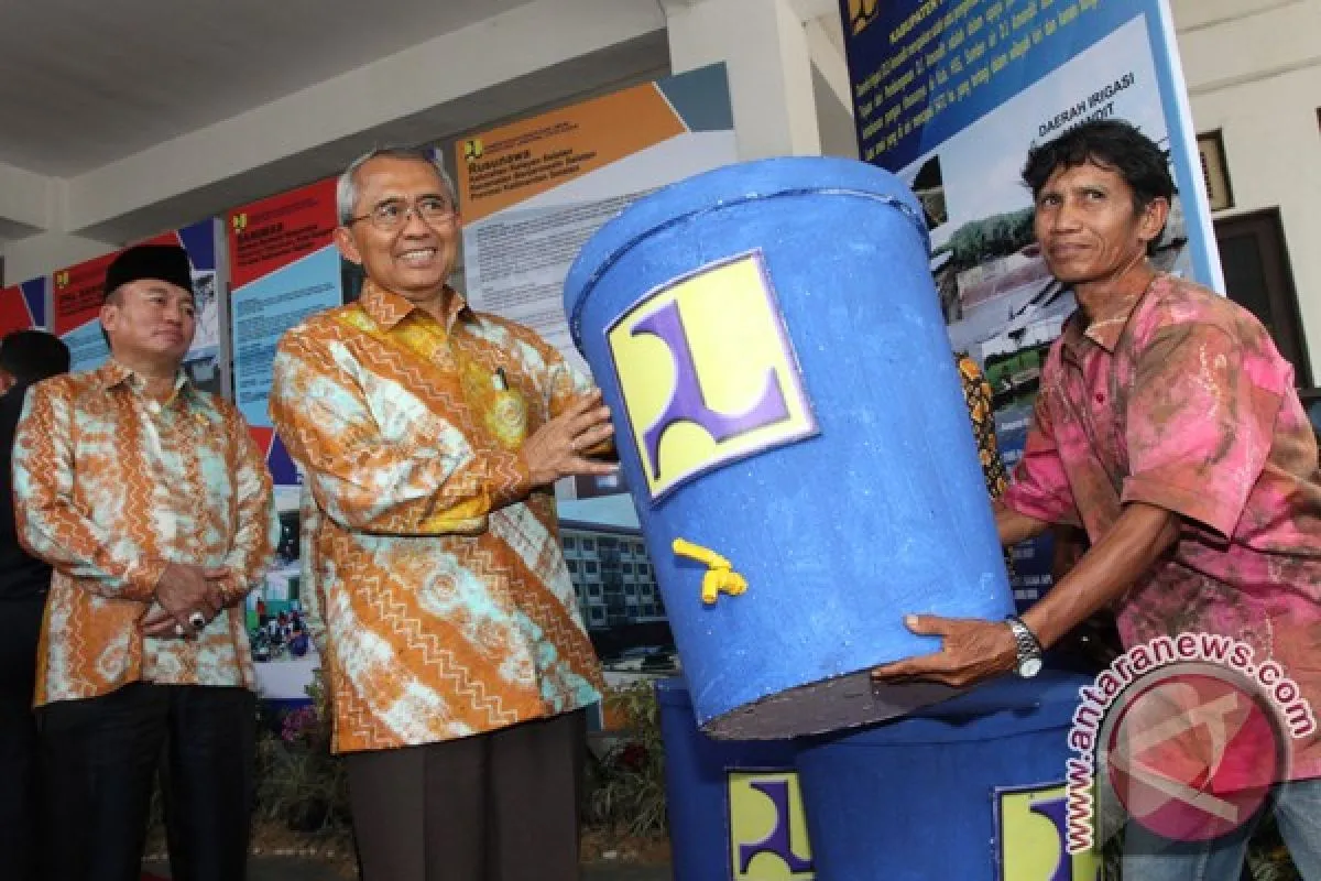 Banjarmasin, 24/9 - SISTEM PENGOLAHAN AIR SEDERHANA - Menteri Pekerjaan Umum Djoko Kirmanto menyerahkan simbolis unit sistem pengolah air sederhana (SIPAS) kepada perwakilan masyarakat pada peringatan Hari Jadi Kota Banjarmasin ke 486 di Balai Kota, Senin (24/9). SIPAS akan diterapkan di kawasan pemukiman penduduk untuk menjaga kualitas air baku. Foto ANTARA/Herry Murdy Hermawan/B