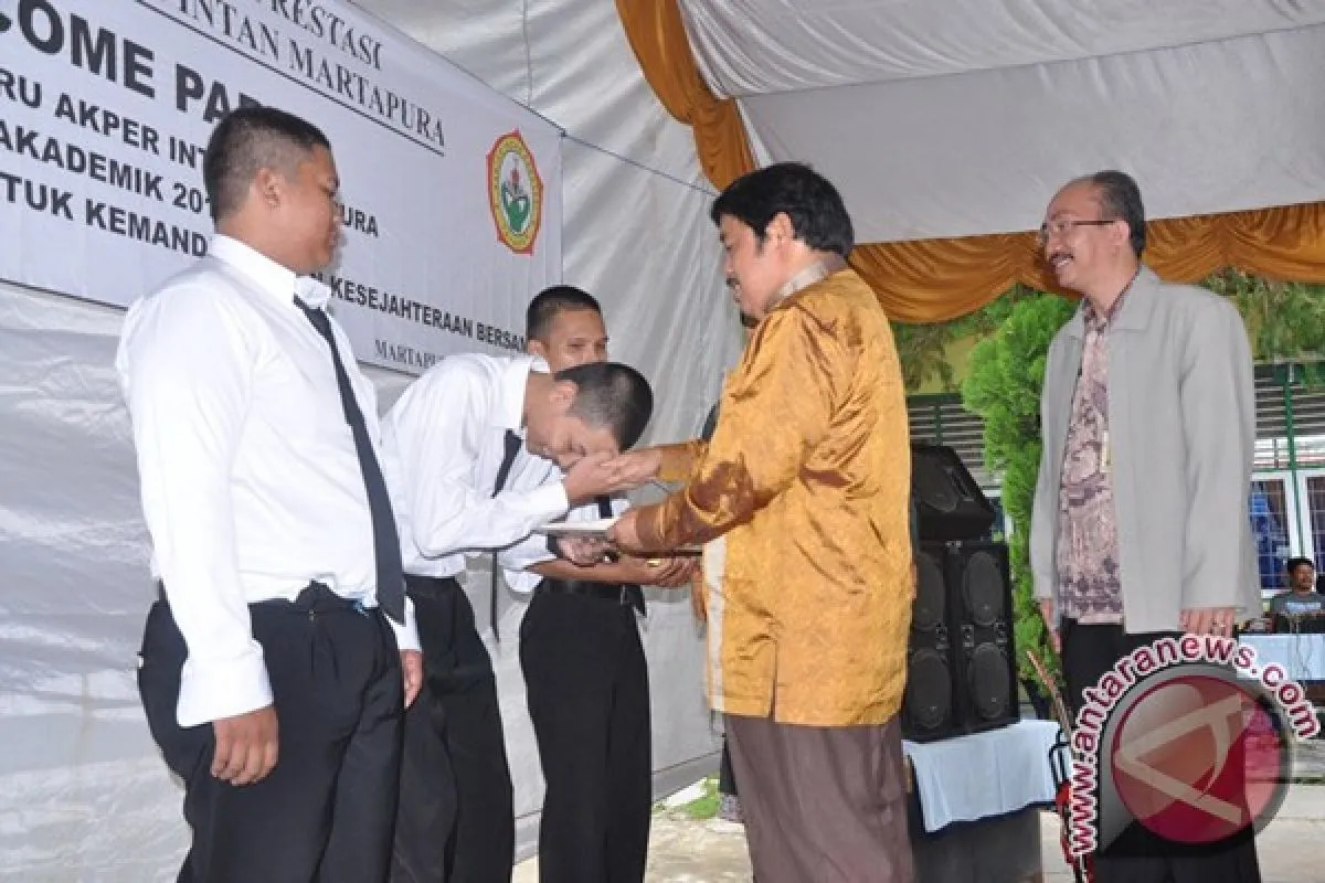 1Banjarmasin, 9/9 - WELCOME PARTY - Sekda Banjar Ir. Nasrunsyah didampingi Direktur Akper Intan Martapura Sirajudin, SKM. M. Kes juga menyerahkan penghargaan kepada para mahasiswa baru yang dinilai berperestasi saat kegiatan orientasi pengenalan kampus Akper Intan Martapura tahun 2013 saat Welcome Party Mahasiswa Baru Akper Intan Martapura tahun Akademik 2013/2014, di ruang Akper Intan Banjar Martapura.(Foto Antara/humas/D)