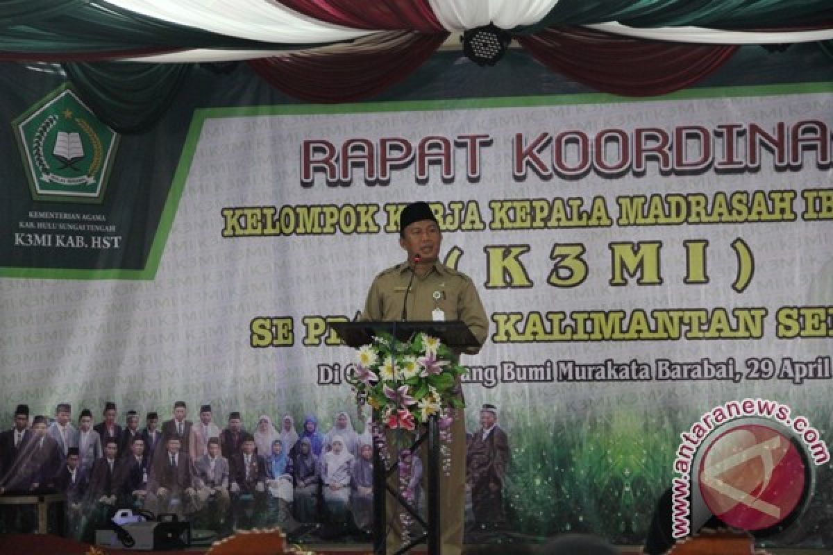 Barabai, 2/5 - Ketua Pelaksana Kelompok Kerja Kepala Madrasah Ibtidaiyah (K3MI) Kabupaten Hulu Sungia Tengah (HST) Humaidi, menyampaikan laporan Rakor K3MI se- Kalimantan Selatan yang didiadakan oleh kantor Kemenag Kabupaten Hulu Sungai Tengah di Ged