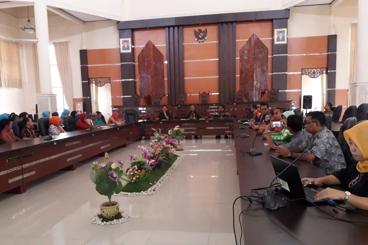 Ketua DPRD Kabupaten Tabalong Darwin Awi memimpin rapat pertemuan dengan ratusan guru honorer K2 yang menyampaikan aspirasi agar bisa diangkat sebagai CPNS. Foto Antaranews.Kalsel/Herlina Lasmianti (Herlina Lasmianti)