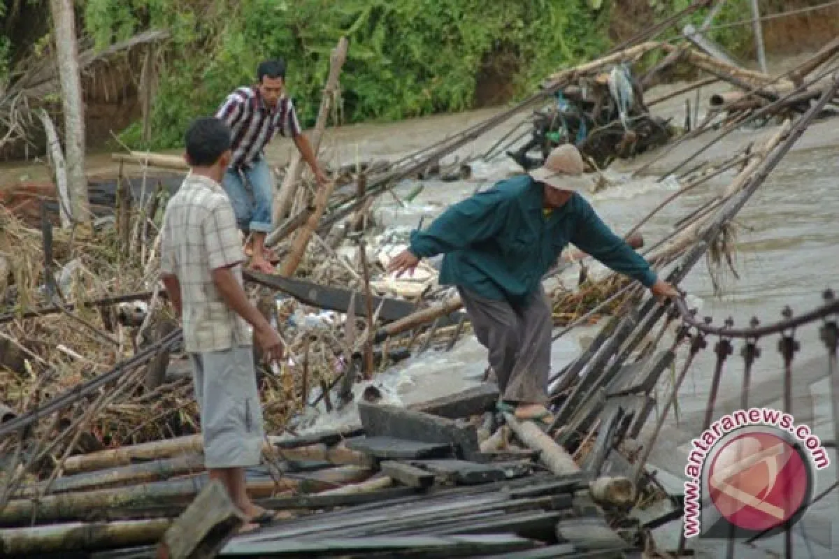 Diduga jembatan kayu tersebut tidak mampu menahan beban terlalu berat, sehingga putus dan puluhan orang yang sedang melintas termasuk beberapa kendaraan tercebur ke sungai.