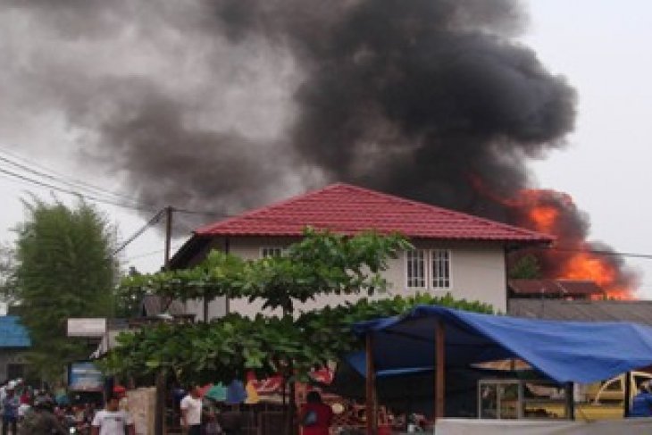 Banjarmasin, 13/10 - KEBAKARAN GRIYA PERMATA - Nyala api dan asap membumbung ke udara saat terjadi kebakaran di Komplek Griya Permata, Jalan Handil Bakti, Rabu (12/10). Dalam peristiwa tersebut puluhan warga berhamburan ke luar rumah sambil menyelamatkan harta benda, menurut saksi mata "jago merah" mulai berkobar pukul 17.30 Wita itu diduga hubungan arus pendek listri. Foto ANTARA/Sugi RZ/A